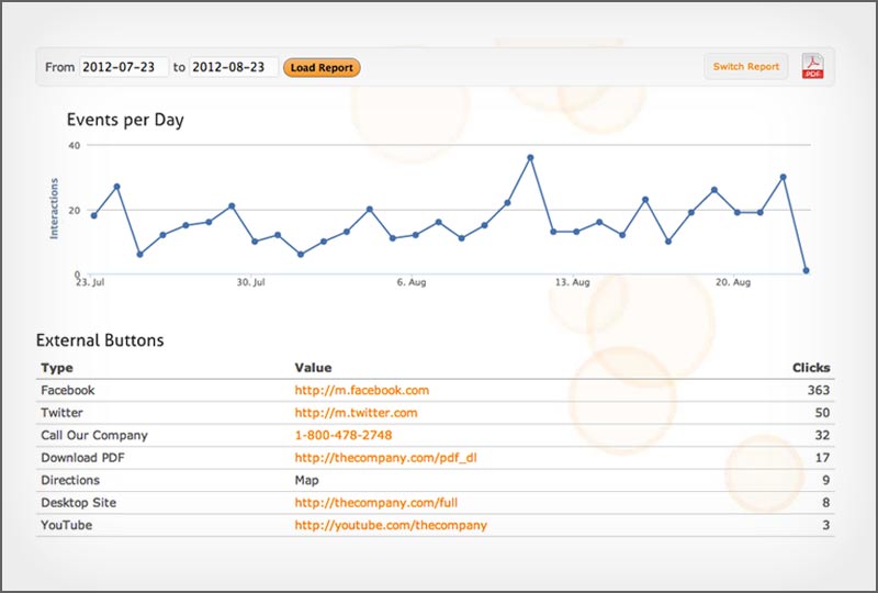 Qfuse detailed mobile analytics provide actionable intelligence at your fingertips. Our real-time reporting is fully integrated into the Qfuse dashboard, making it easy to monitor the performance for all of your mobile site and landing pages on-demand. You can also filter reporting by date range and download professionally formatted PDF reports to share with your clients or marketing team.